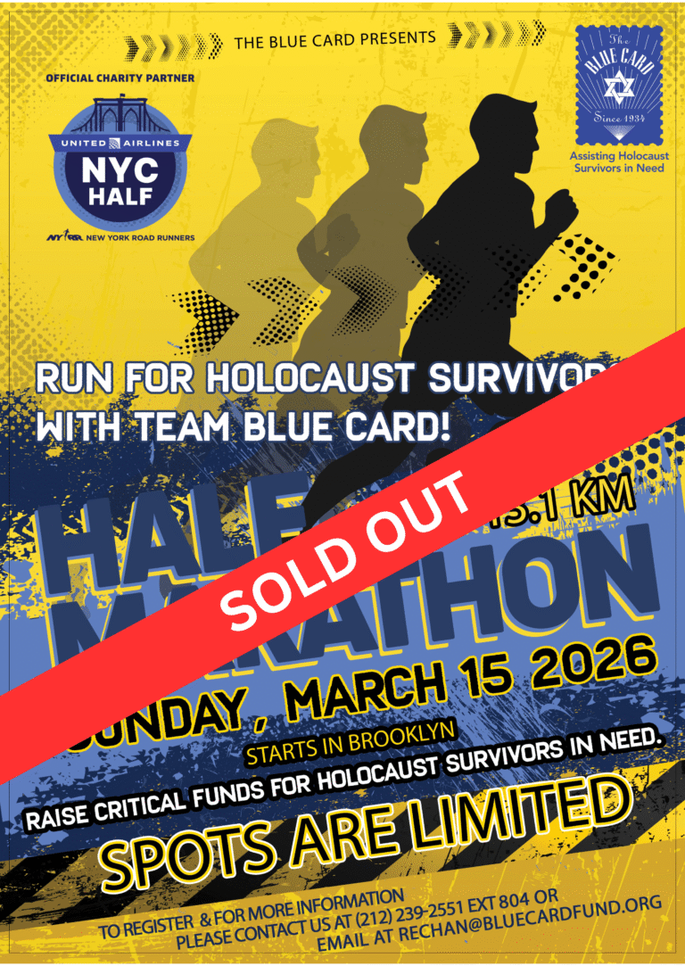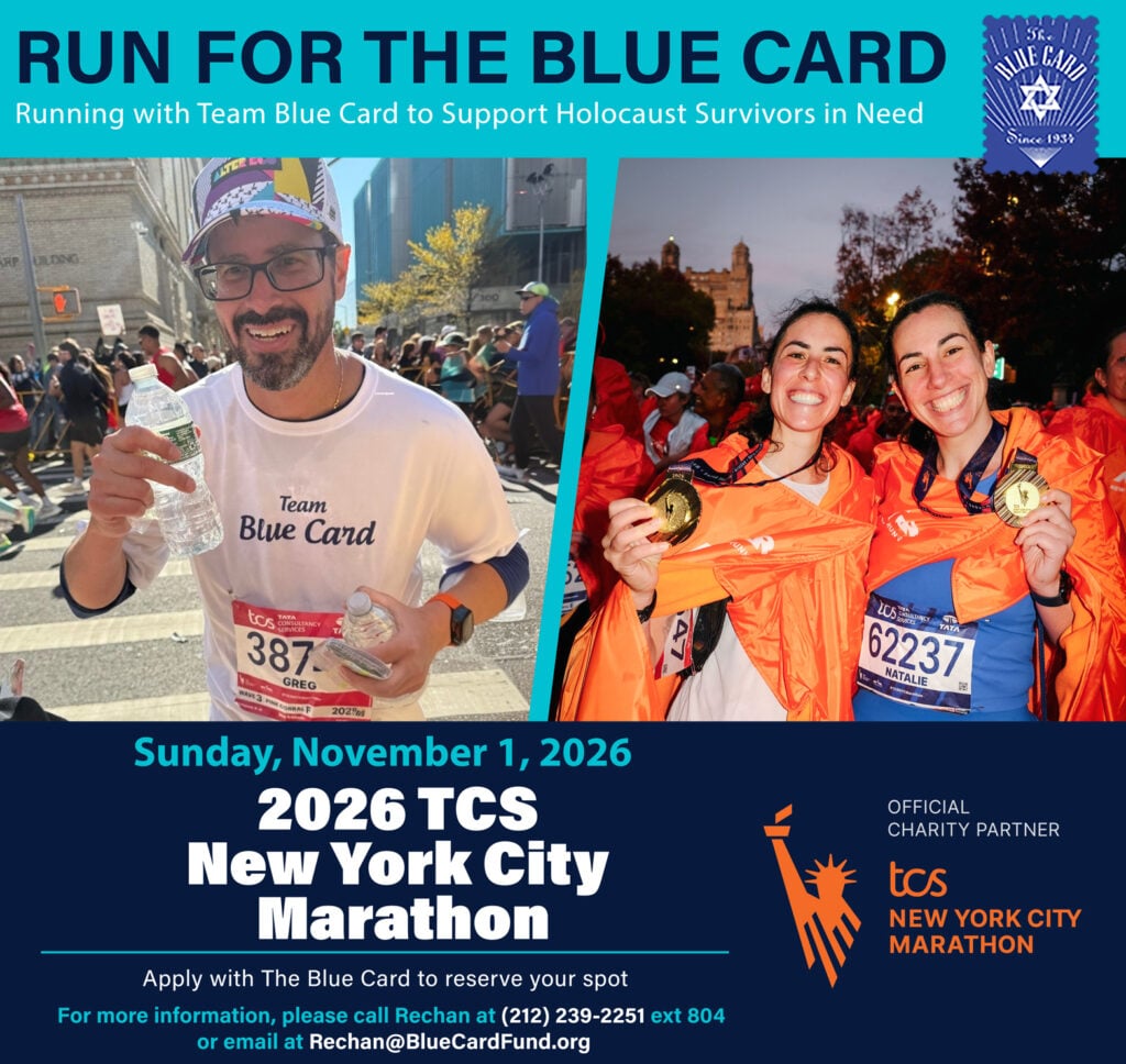 Team Blue Card runners use their training, platform, and the marathon to raise much needed funds and awareness to help The Blue Card with our mission of helping Holocaust survivors in need. Join Team Blue Card and make this amazing run and experience even more special by dedicating it to helping Holocaust survivors!